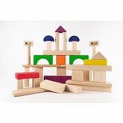 These are the blocks that will be handed down for generations. This Deluxe 68 pc. Rainbow Stained set comes with 68 blocks in 12 different shapes: 12-half units, 10-units, 2-double units, 10-half pillars, 8-pillars, 4-double pillars, 6-columns, 4-Roman arches, 4-half circles, 2-small triangles, 4-double flats, and 2 - half unit flats.