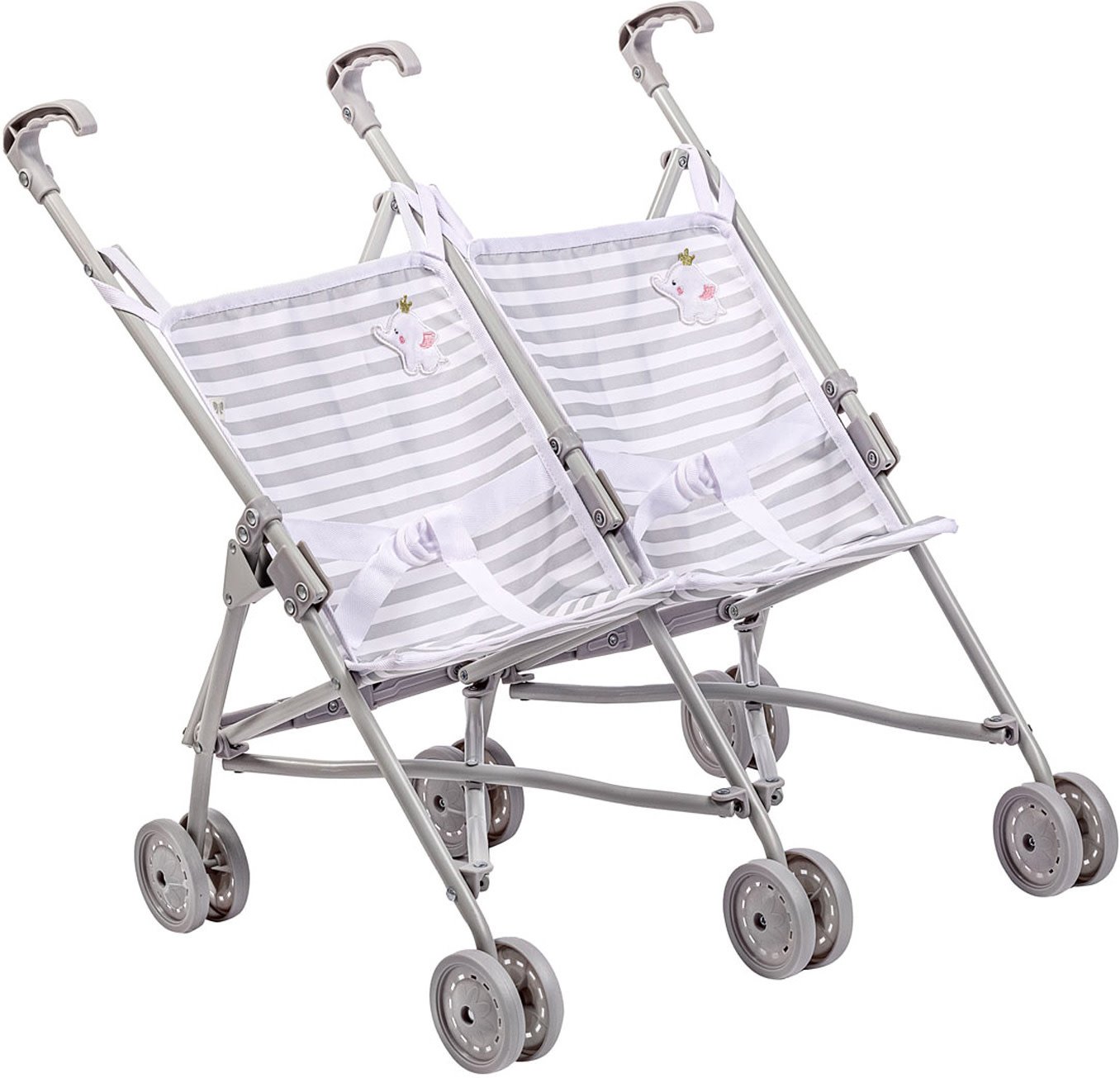 Double stroller for those double trouble twins that little girls love to mother. This double stroller is easy to fold and store when not in use, just like the real thing!