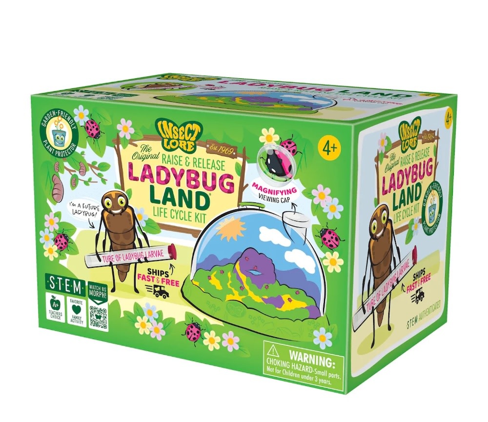 Discover the lifecycle of ladybugs first-hand with the Ladybug Land® kit, which includes a prepaid voucher for larvae. This educational product from Insect Lore allows you to observe the transformation of Pink Spotted Ladybug larvae right in your own home.   Great to release in your garden when time!