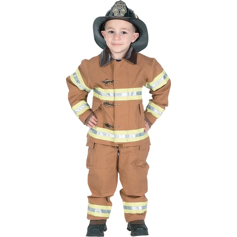 The Jr. Fire Fighter is sure to make little kids into big heroes. Coat with hook and loop with zipper closure, pockets, authentic gauntlet cuffs, & reinforced elbow patches. Stripes are reflective to keep kids safe in the dark. Helmet sold separately.