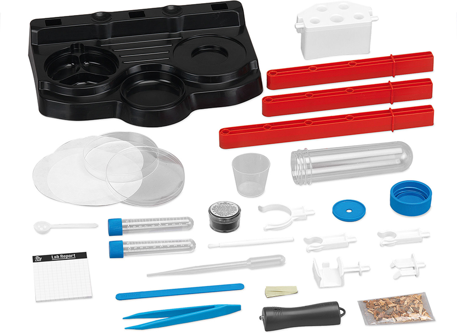 Assume the role of a forensic scientist to find out! Perform experiments on evidence in this large laboratory station using chemical and physical techniques. With the Forensic Investigation Kit, you will analyze solids and liquids, make a fluorescent solution, lift fingerprints, look for counterfeit bills, and examine ink using chromatography. Experiments are accompanied by exciting stories of make-believe mysteries and crimes for your dedective to solve.