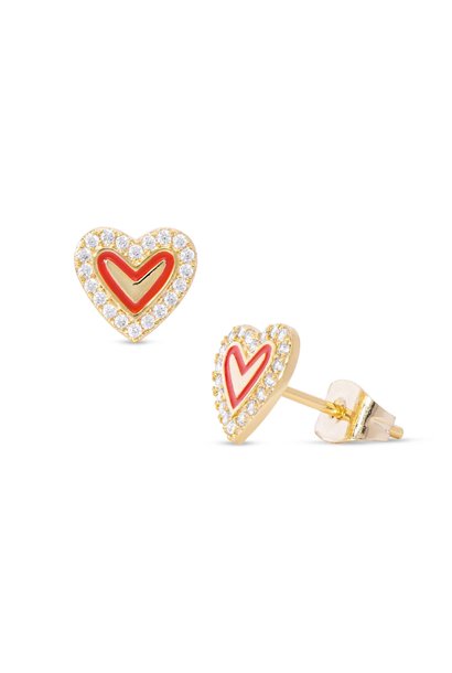 Lily Nily Lily Nily Gold Red Heart & CZ Stud Earrings