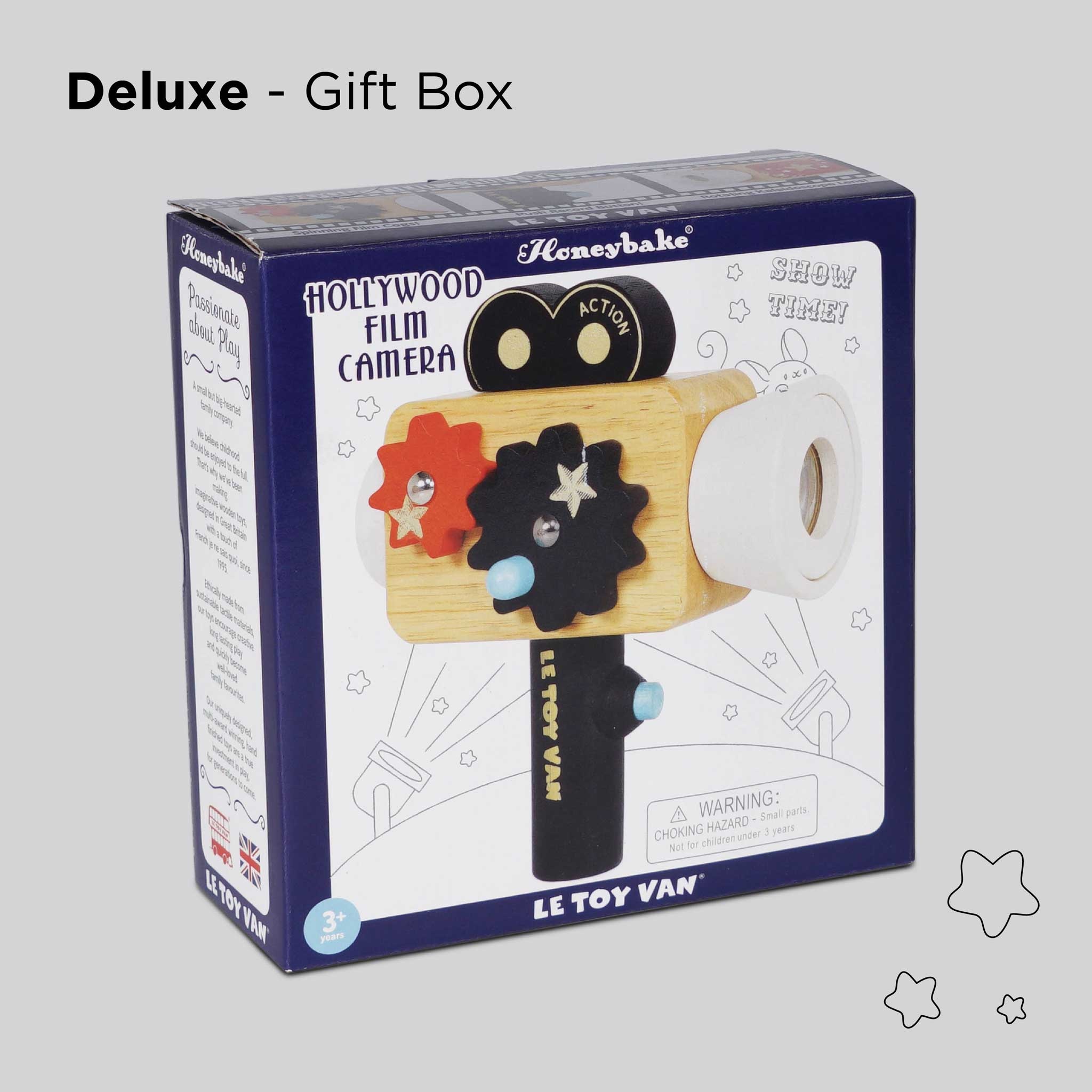 Inspire imaginative play with this eco-friendly toy camera. Lights, camera, action! Hollywood is calling for budding young actors or film directors with this dazzling wooden toy film camera.