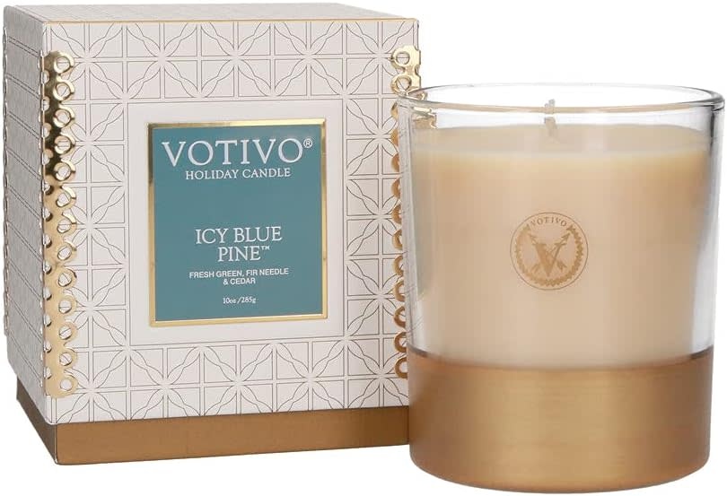 The Votivo Candle Collection has the perfect candle for all times of year. The Icy Blue Pine Candle will be a hit for your winter holidays. Over 60 hours of clean burning.