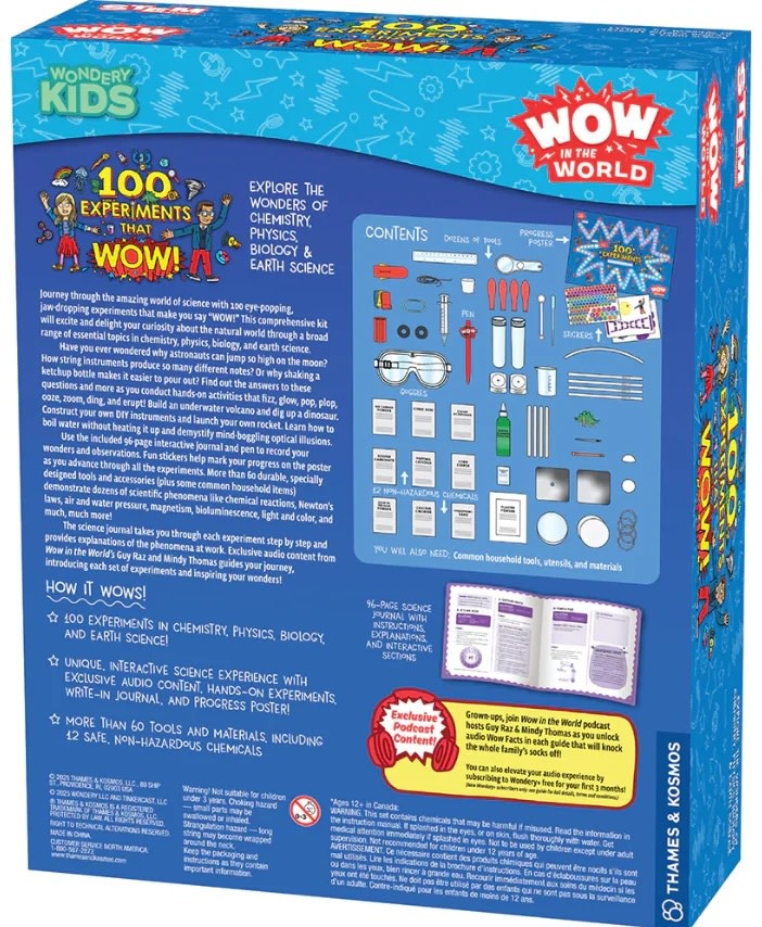 This science kit is filled to the brim with 100 eye-popping, jaw-dropping experiments that make you say "WOW!" This comprehensive kit will excite and delight your curiosity about the natural world through a broad range of essential topics in chemistry, physics, biology, and earth science.